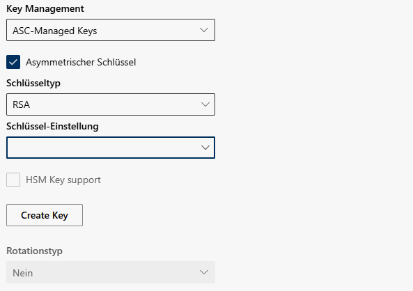 Rotationstyp | Schlüsselrotation manuell oder intervallbasiert festlegen. Verschlüsselungsschlüssel (Recording Insights oder vom Kunden verwaltete Schlüssel) werden in der aktuellen Konfiguration gedreht. Die Verschlüsselungsschlüssel können in Recording Insights individuell angepasst werden. Der Verschlüsselungsschlüssel wird in der Mandantenkonfiguration gespeichert.