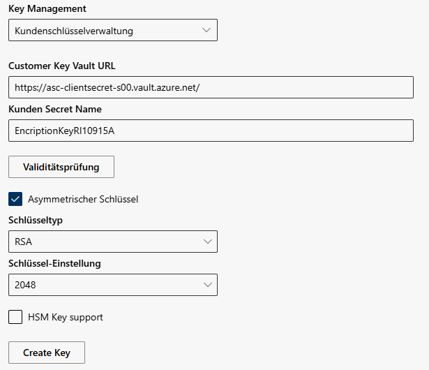 - | Kunden-Schlüsseltresor-URL | Konfigurieren Sie die URL-Adresse für den Schlüsseltresor und den Kunden-Geheimnamen.
