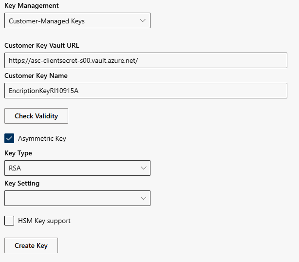 − | Customer Key Vault URL | Configure the URL address for the key vault and the customer secret name.